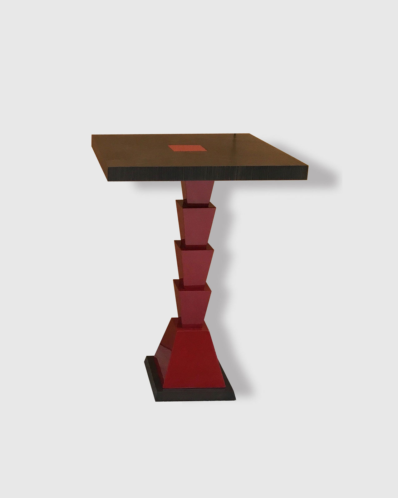 Guéridon Palmier carré – bois laqué et plateau en marqueterie de bois des marais – h 58 x l 42 x L 42 cm – Création Stanislas de Baudus pour CSLB Studio